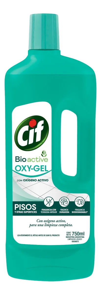 Cif Pisos OxyGel es un limpiador con fórmula de oxígeno activo que ofrece una limpieza profunda y visible, dejando los pisos brillantes, con secado rápido y una fragancia fresca.