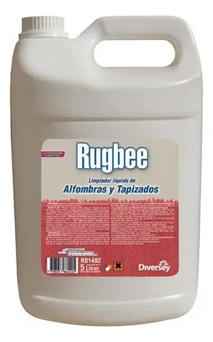 Rugbee Limpiador líquido de alfombras y tapizados es la solución ideal para mantener tus espacios impecables. Este producto de la reconocida marca Diversey viene en un envase de 5 litros, ofreciendo una gran durabilidad y rendimiento. Su fórmula avanzada penetra profundamente hasta la base de las fibras, permitiendo limpiar en menor tiempo y con menor esfuerzo. Es perfecto para ser aplicado con máquinas de altas revoluciones, garantizando una limpieza eficiente y rápida. Este limpiador es nuevo y cuenta con vencimiento, asegurando su frescura y efectividad. Rugbee es la elección perfecta para quienes buscan calidad y resultados profesionales en la limpieza de alfombras y tapizados.